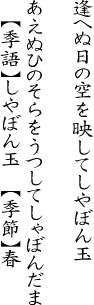 あなたに逢えない日のしゃぼん玉は、もろく、はかなく、吹けば吹くほどに淋しさが募るようです。