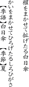 櫂を握る人が、あなただから、私は安心して、こんなにも真っ白な日傘を差していられるのだから……。